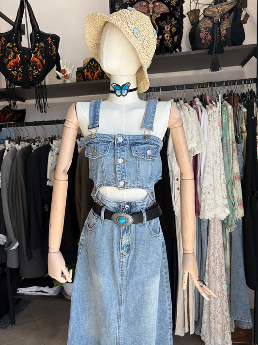 Vestito Midi in Denim con Cut-Out