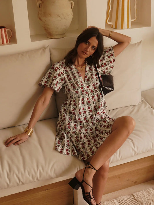 Mini Abito Cruz in Cotone a Righe e Fiori - Charme Provenzale
