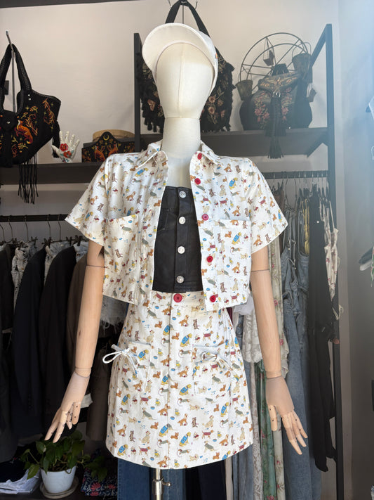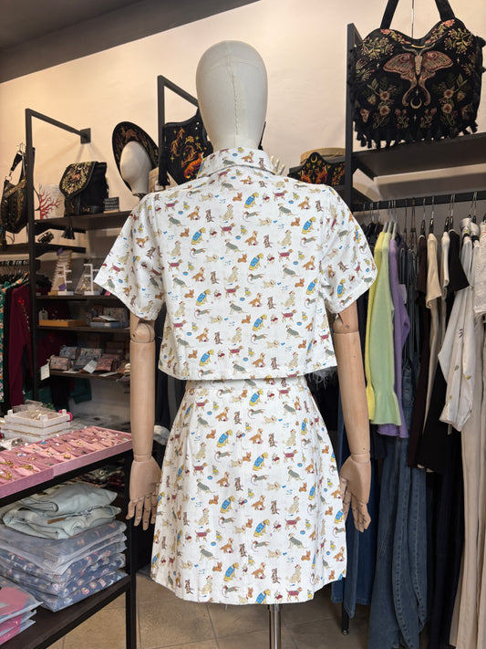 Camicetta Crop "Happy Dogs" in Cotone
