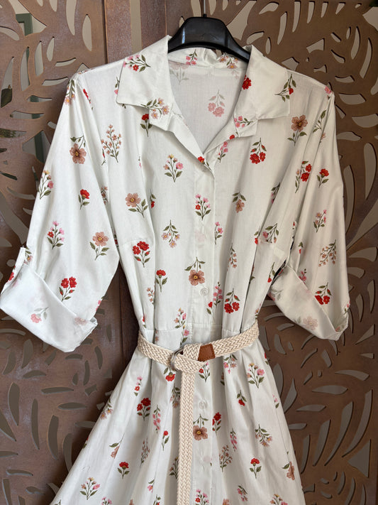 Abito Bustino Midi Floreale in Cotone Ricamato – In 2 Colori
