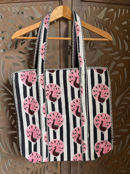 Borsa Tote Trapuntata in Cotone con Zip - Pavoni