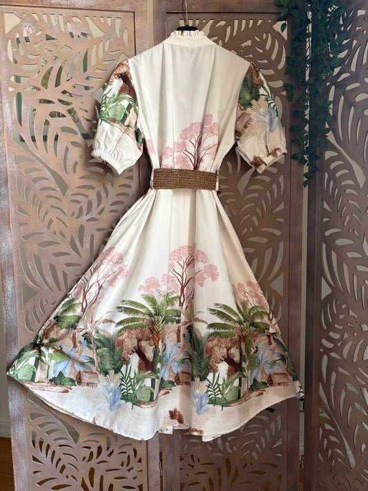 Chemisier Midi in Cotone – Stampa Tropical Vintage