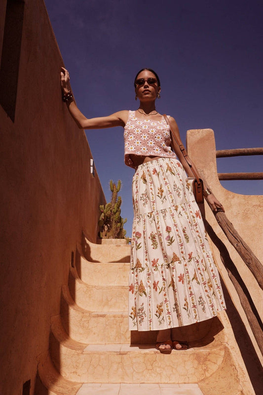 Gonna Maxi in Cotone con Stampa Floreale Botanica Naima