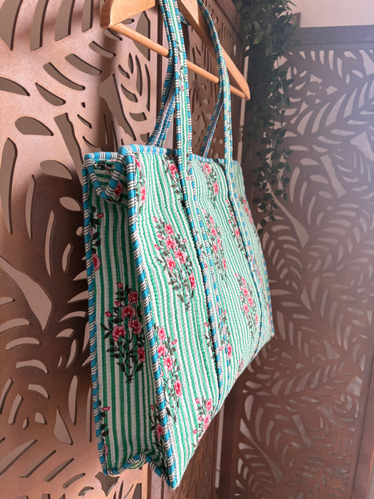 Borsa Tote Trapuntata in Cotone con Zip - Secret Garden