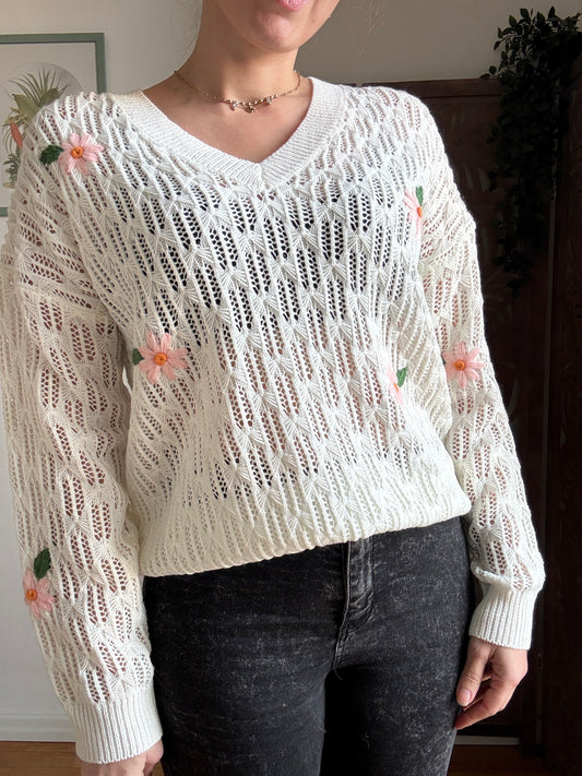 Maglia Daisy in Crochet con Margherite Ricamate - in 2 Colori