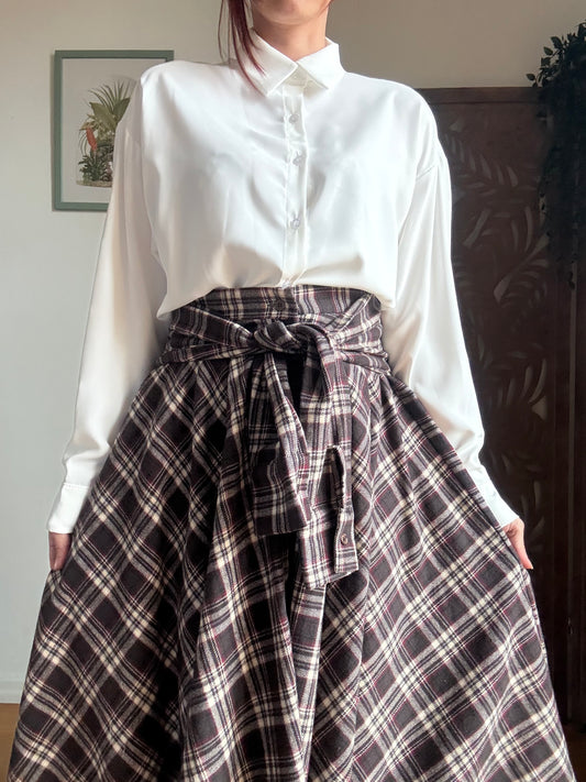 Gonna tartan a vita alta in cotone asimmetrica con maniche annodate in vita
