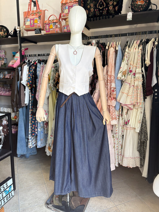 Pantaloni Palazzo in Denim Fluido con Cintura
