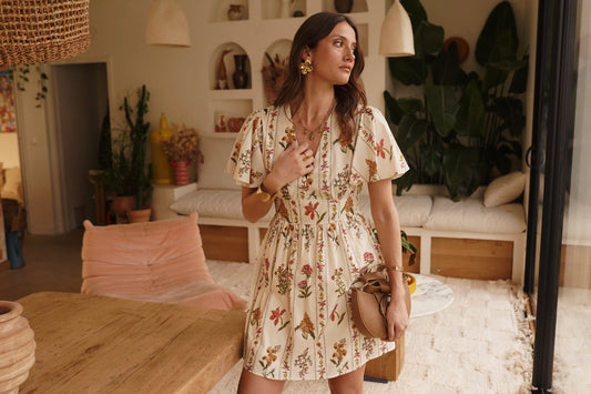Abito Mini in Cotone con Stampa Botanica Souheila