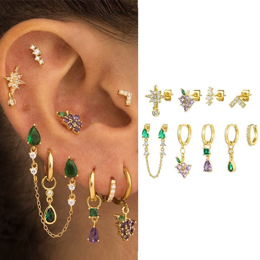 Set di 10 orecchini Uva e Smeraldo in 2 colori