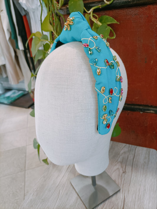 Cerchietto fascia con nodo Crystal Drops celeste