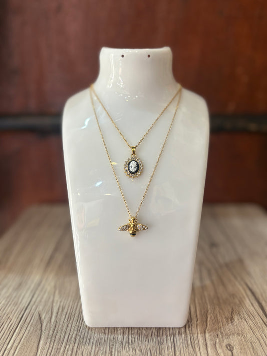 Collana in acciaio inossidabile color oro con ciondolo smaltato floreale