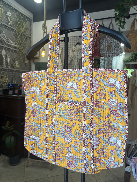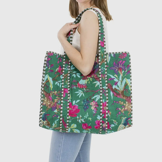 Borsa in cotone trapuntata floreale con zip e taschina frontale in 3 colori