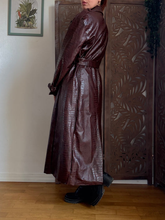 Trench lungo in ecopelle effetto coccodrillo bordeaux