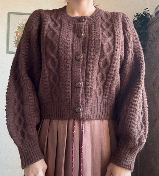 Cardigan corto romantico in stile vintage con maniche a palloncino cioccolato