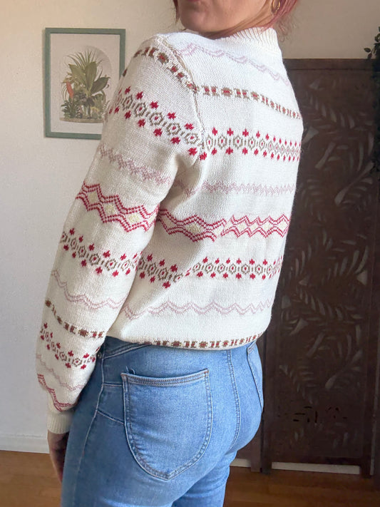 Cardigan corto in maglia Fair Isle Cottagecore panna