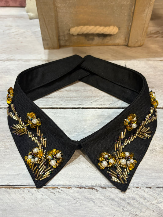 Colletto gioiello con ricamo floreale oro e perle - in 2 colori