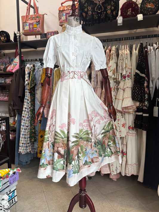 Abito Mini in Cotone con Stampa Botanica Souheila