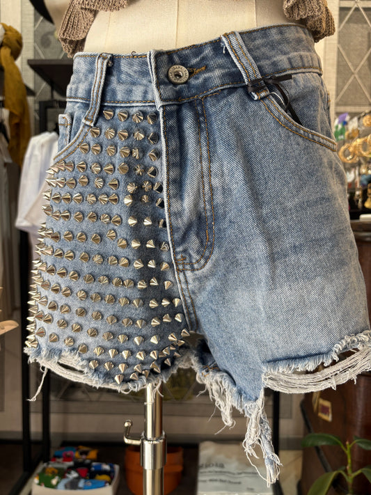 Shorts di Jeans Donna con Borchie – Denim Strappato, Look Rock in 2 colori