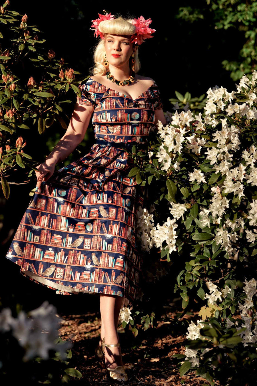 Lily Retro: Abito Library Book & Owl con Scollo a Barca