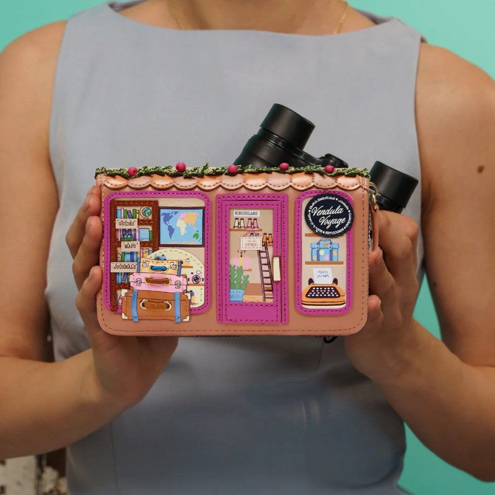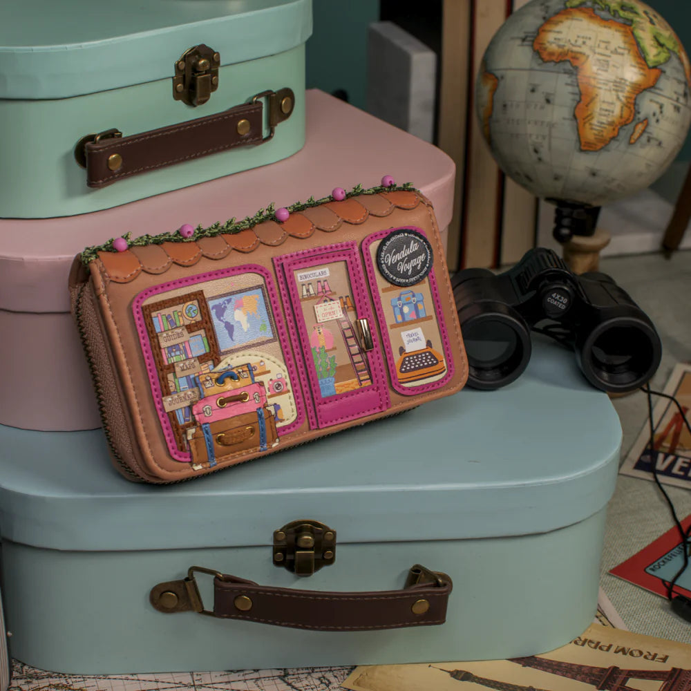 Biglietto per l’ordine: il Portafoglio da Donna con Zip Vendula Voyage unisce dimensioni compatte e organizzazione intelligente. In pelle vegana, entra in qualsiasi borsa e offre sei scomparti per le carte, una tasca portamonete con zip e tasche per le banconote. Preparati a viaggiare con la fantasia: fotocamere retrò, bagagli classici e guide che attraversano il globo sono pronti a ispirare la tua prossima avventura!