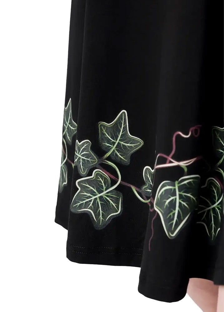 Il giardino di una strega che prende vita. Questo abito botanico scuro avvolge la tua figura in morbido cotone, ornato da rami di edera intrecciati che sembrano muoversi a ogni tuo passo. Pensato per le streghe moderne e per chi ama la moda ispirata alla natura, è un capo audace ma romantico: elegante, deciso e inconfondibilmente "witchy".