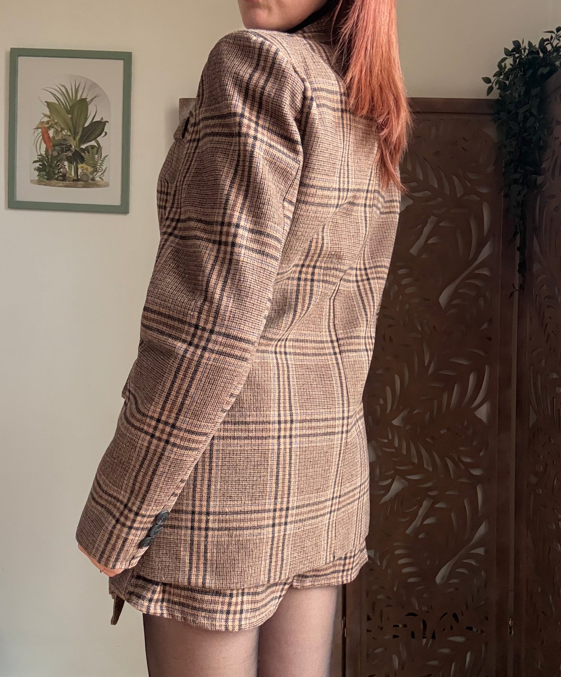 Blazer strutturato a quadri marrone in stile Preppy Chic