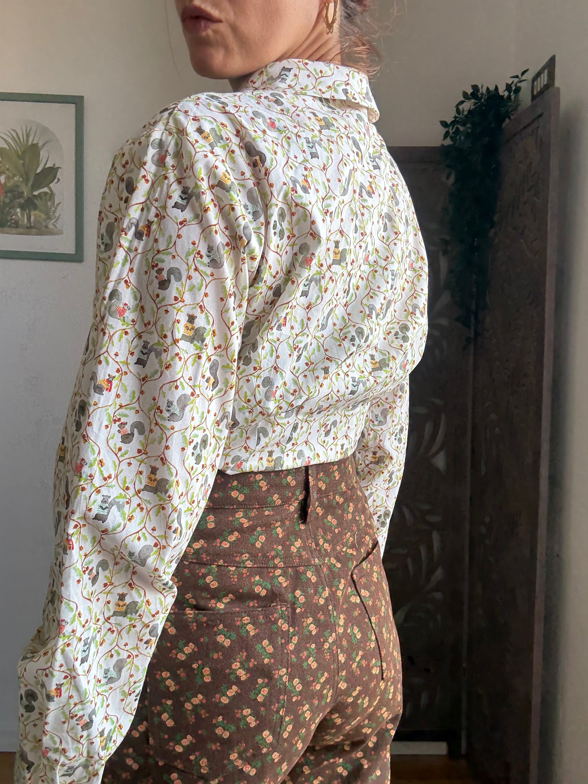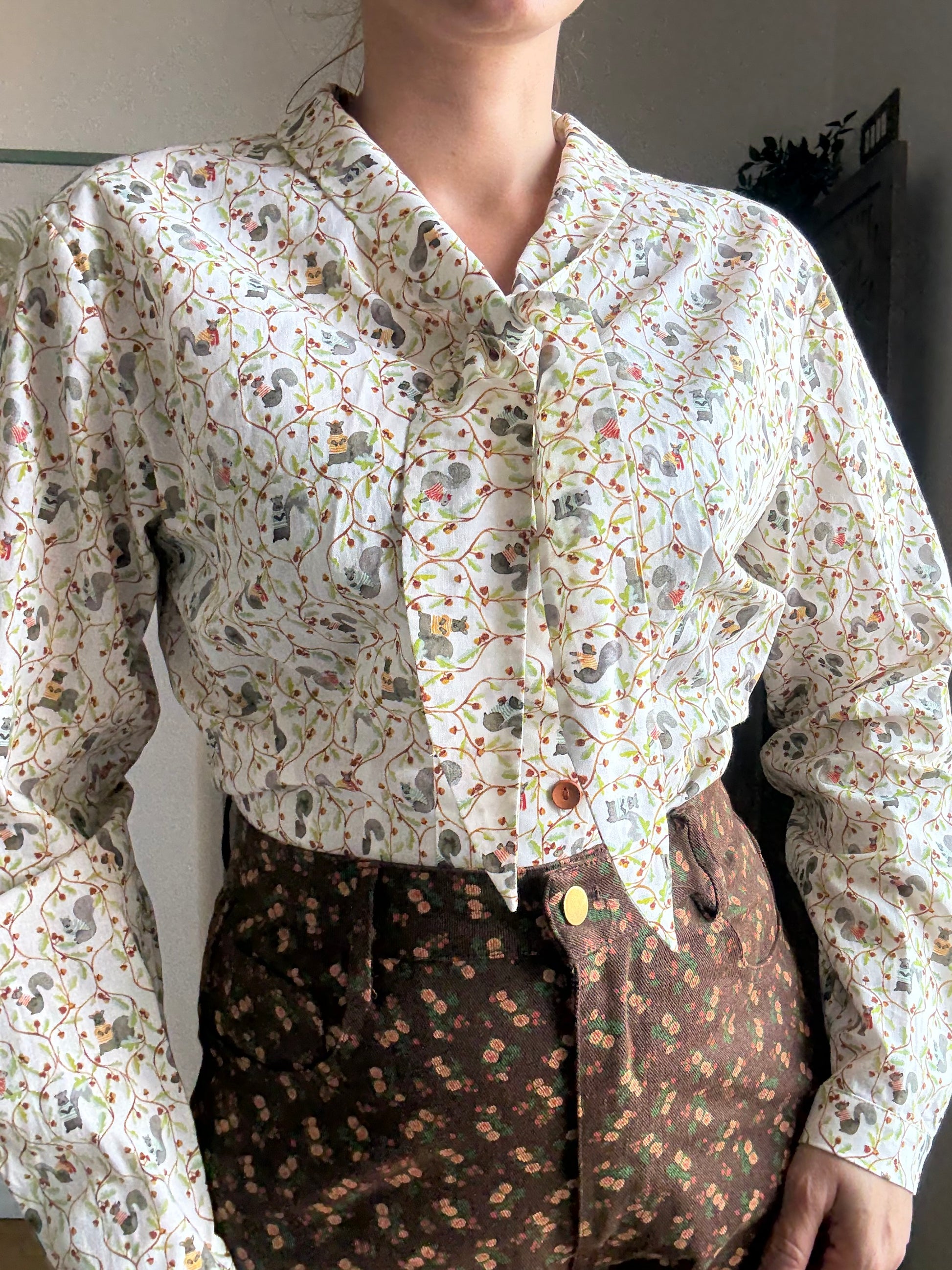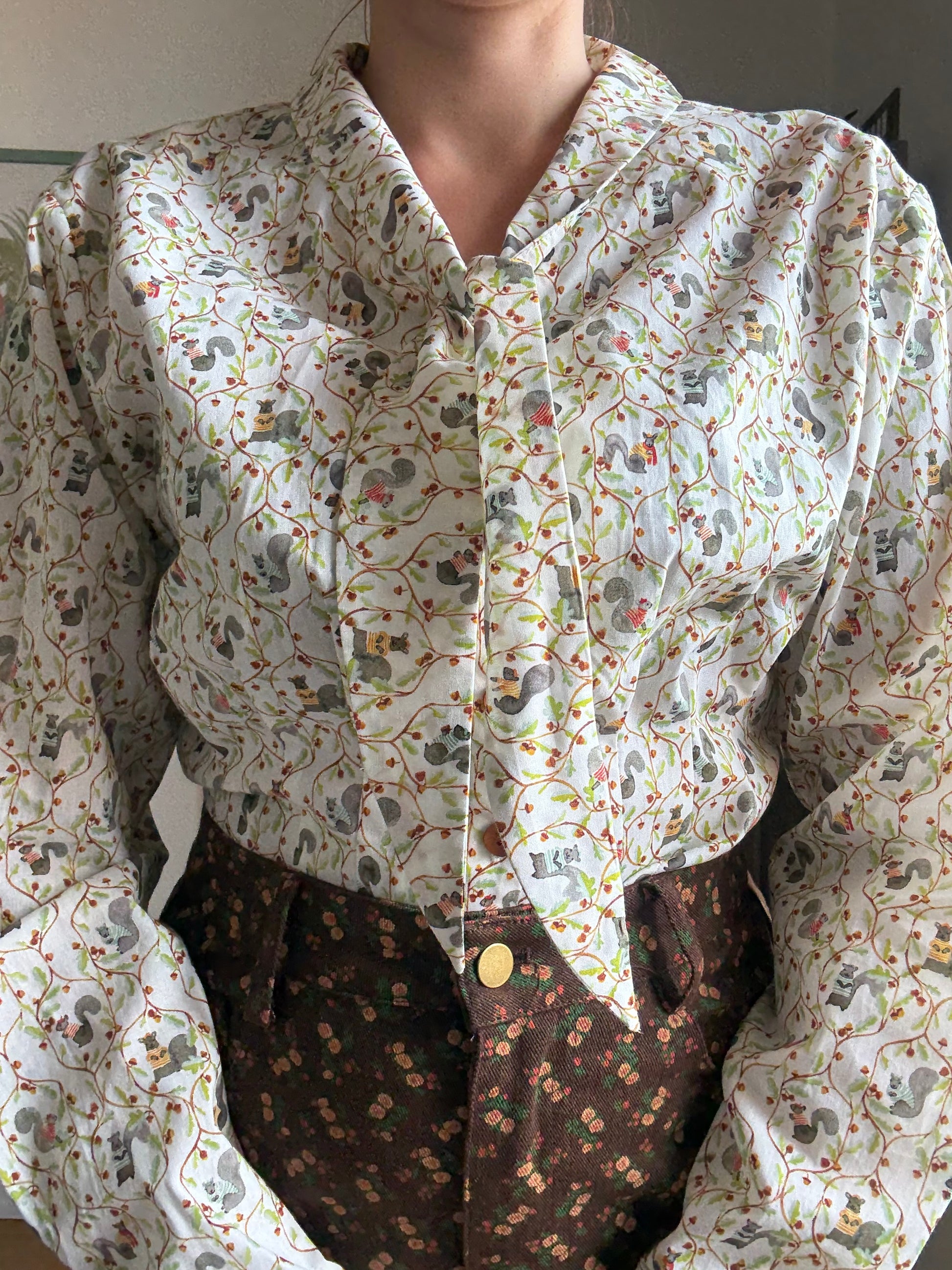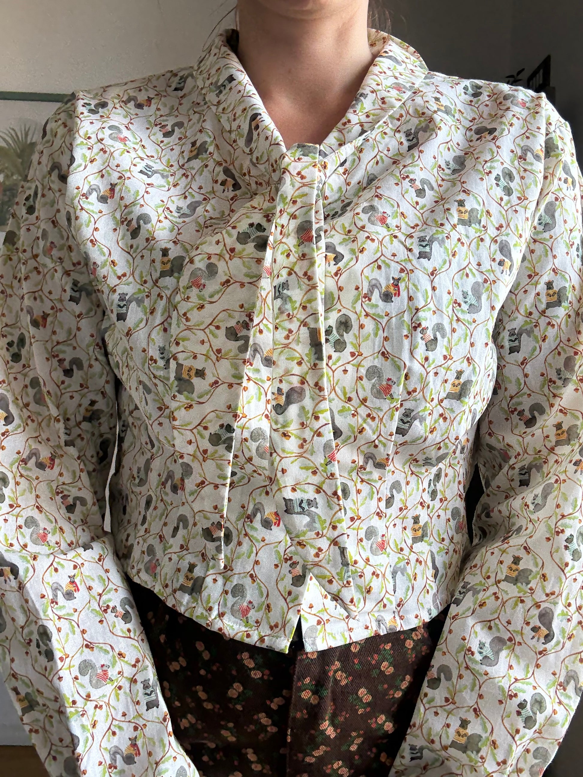 Camicetta retrò inglese in cotone con fiocco al collo French Squirrels