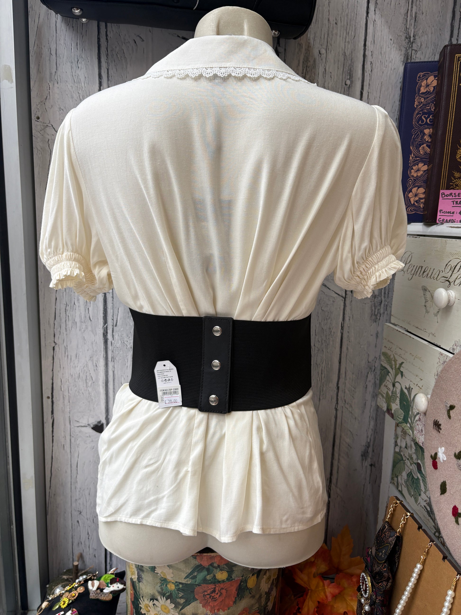 Cintura alta in stile corsetto in similpelle, ideale per segnare il punto vita e valorizzare la figura su abiti, camicie o maglioni. Un accessorio versatile che unisce estetica e praticità.