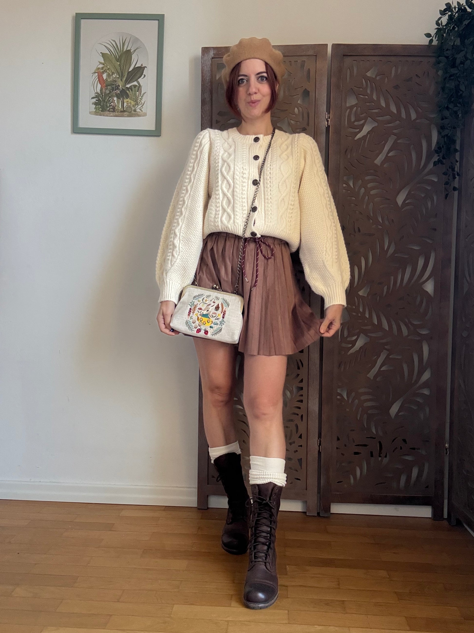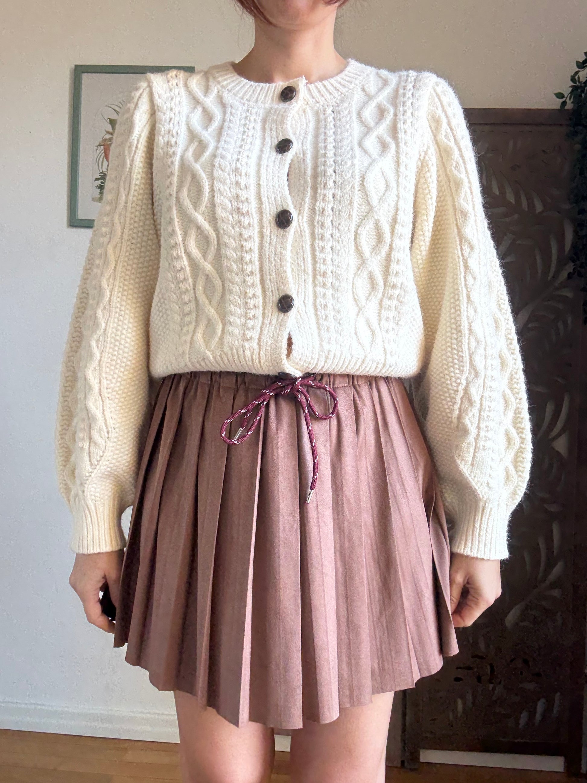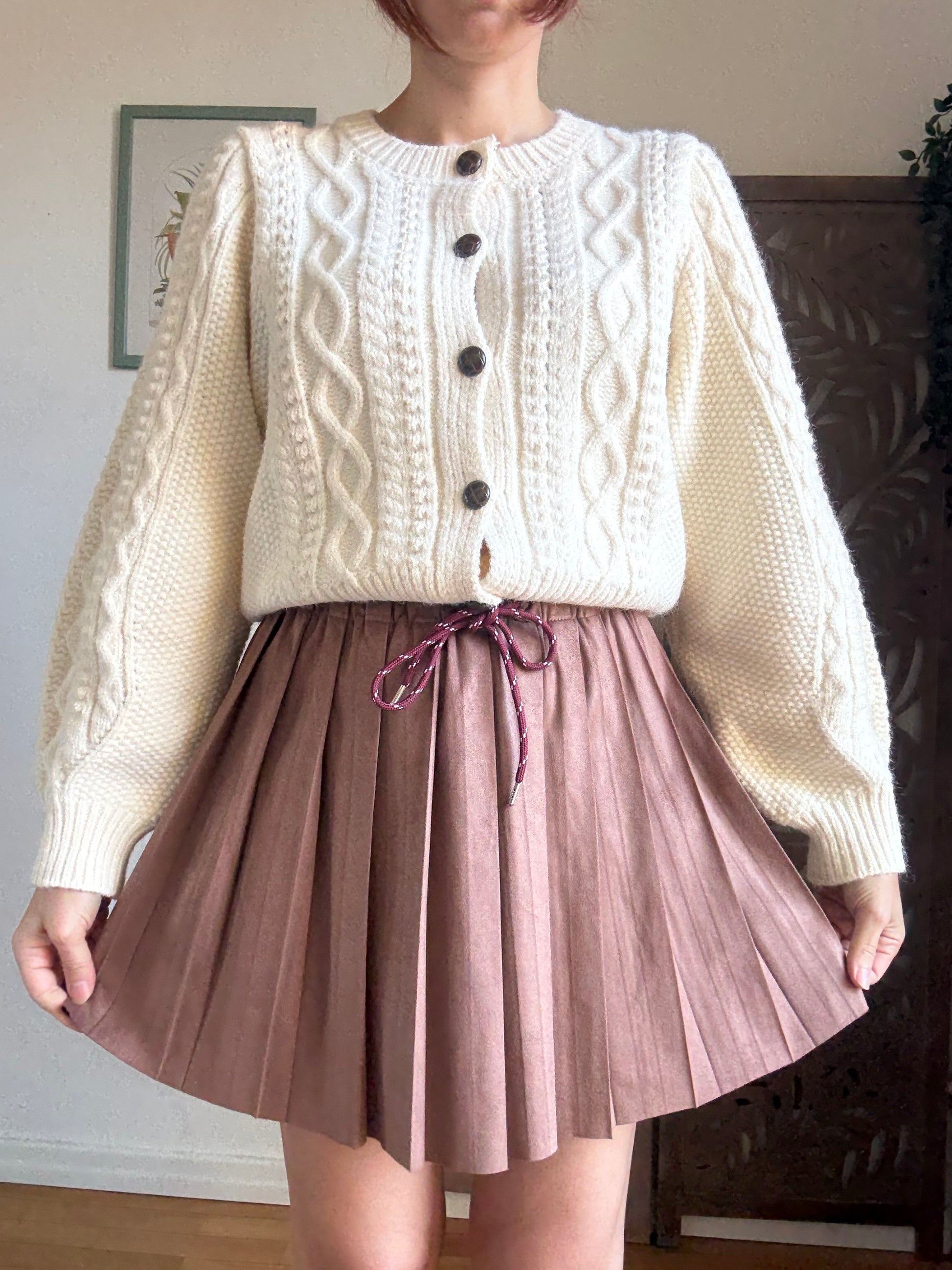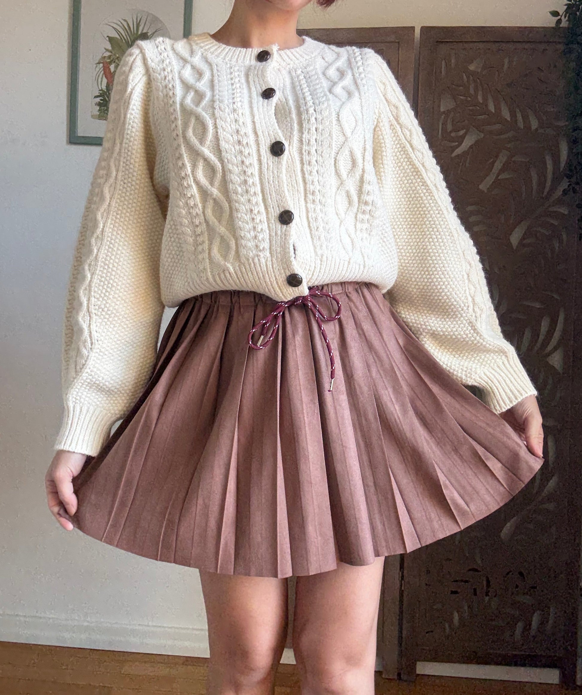 Minigonna scamosciata College a pieghe plissè in 2 colori - Marrone e Nero