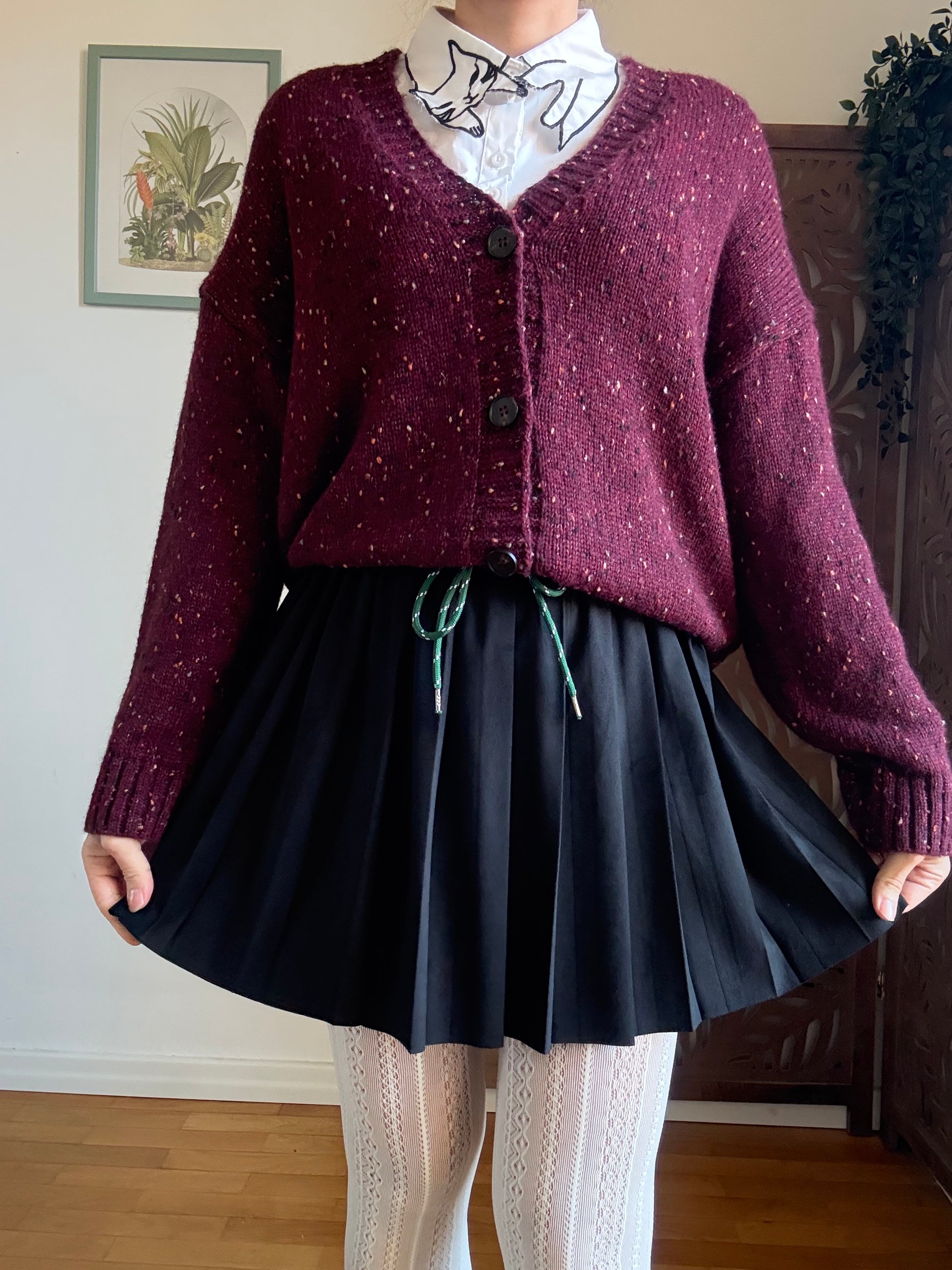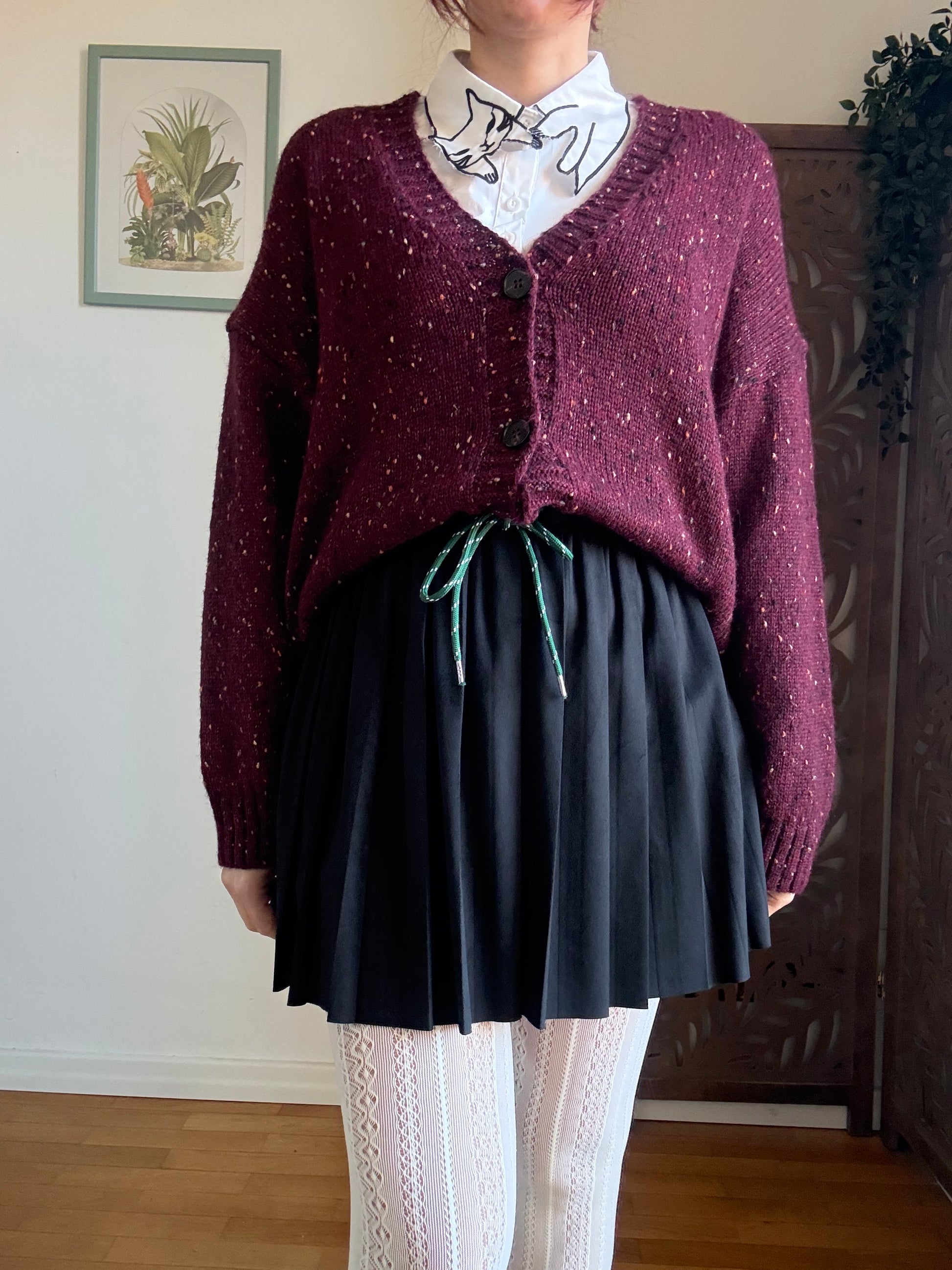 Un must-have retrò rivisitato in chiave romantica. Questa minigonna è caratterizzata da un elegante tessuto plissè che crea volume e movimento ad ogni passo, perfetto per uno stile sbarazzino ma sotisficato. I due colori sono versatili e adatti ad abbinamenti sia con tonalità scure che chiare e neutre. Il dettaglio della coulisse in vita con cordoncino colorato a contrasto aggiunge un tocco in stile College. Abbinale a maglioni oversize e stivali alti o a bluse leggere e mocassini.