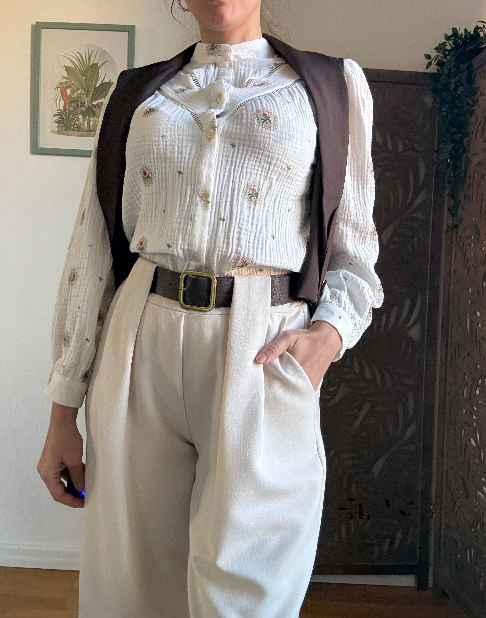 Pantalone palazzo burro con passanti pences e cintura inclusa