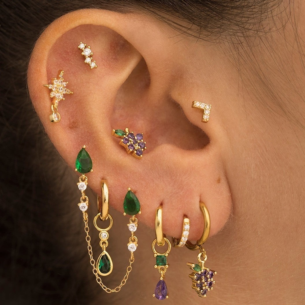 Set di 10 orecchini Uva e Smeraldo in 2 colori