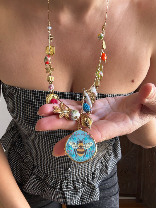 Collana Multi Charm in Acciaio Inossidabile con Medaglione Ape