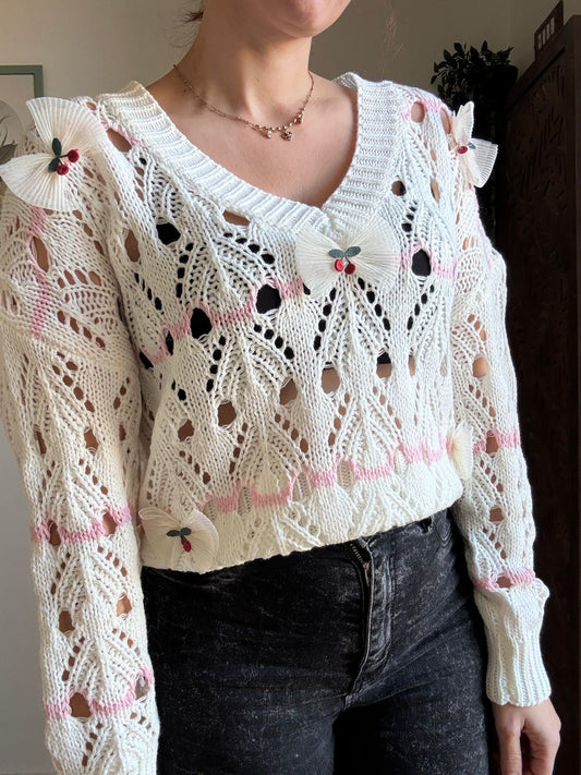Maglia "Chérie" Traforata con Fiocchi e Ciliegie